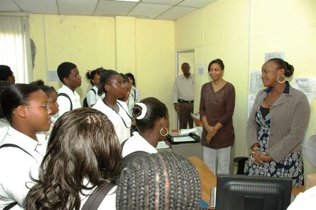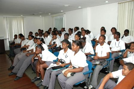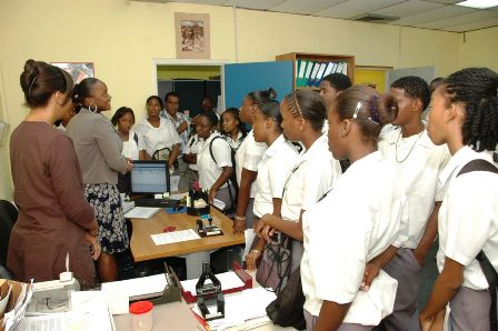A group of Sundial School student werre giving a tour of several government deptartment by the staff of the Island Secretaries Office.