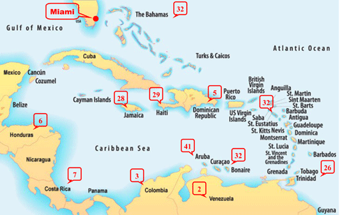 WILLEMSTAD — The Netherlands Antilles figured at 32nd place, worth 570 million dollars, in the top-ten of countries doing business with Miami. Apparently, the clouded political relationship cannot pressure the trade, as Venezuela became business partner no. 2, after Brazil.