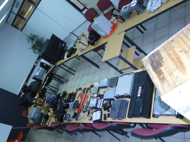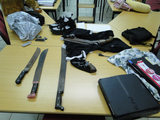 During these searches which took place in the presence of the Acting Judge and the Chief Public Prosecutor, a sawed-off shotgun, a revolver, two cars, several scooters, motorcycles, flat screen televisions and many other electrical appliances and some cash were confiscated. Four persons were arrested during these searches. Their initials are C.R., R.