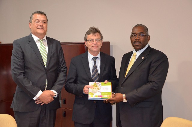 PHOTO CUTLINE: L to R, Outgoing Dutch Representative in Philipsburg, M.C.M. Jonkers, the new representative in Philipsburg, G. Versluis, and President of Parliament Hon. Rodolphe Samuel.